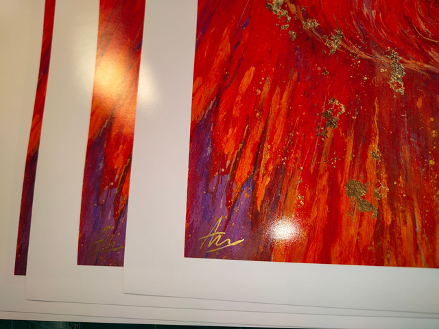 Signed in gold ink, a faithful reproduction of the painting 'Rebirth' by Adam Martin. Includes certificate of authenticity.